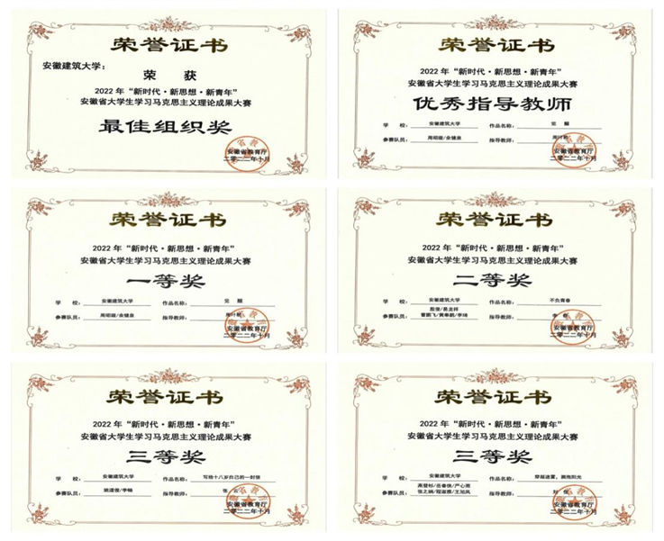 本网讯 近日,由安徽省教育厅主办的2022年“新时代•新思想•新青年”安徽省大学生学习马克思主义理论成果大赛圆满落下帷幕,所有参赛作品评审结果已在安徽省教育厅网站公布。beat365官网推荐的4件微视频作品全部斩获佳奖,获得一等奖1项、二等奖1项、三等奖2项,1位教师获优秀指导教师奖,beat365官网获最佳组织奖,实现了新的突破。