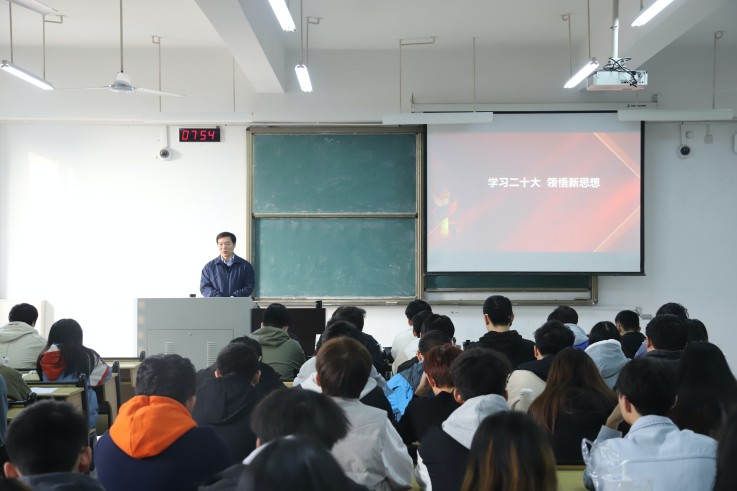 党的二十大是在全党全国各族人民迈上全面建设社会主义现代化国家新征程、向第二个百年奋斗目标进军的关键时刻召开的一次十分重要的大会。大会科学谋划未来五年乃至更长时期党和国家事业发展的目标任务和大政方针,事关党和国家事业继往开来,事关中国特色社会主义前途命运,事关中华民族伟大复兴。学校党委书记孙道胜,校党委副书记、校长黄显怀以“学习二十大 领悟新思想”为题,为同学们带来了一堂精彩纷呈的专题课。两位领导紧紧围绕党的二十大报告,讲清楚二十大召开的重大历史意义和政治意义,讲清楚二十大的基本精神和主要内容,讲清楚中国共产党团结带领全国各族人民,成功推进和拓展了中国式现代化,引导学生学习领会党中央的战略目标和深远考量,坚定历史自信、增强历史主动,守正创新、勇毅前行,坚定不移听党话、跟党走。