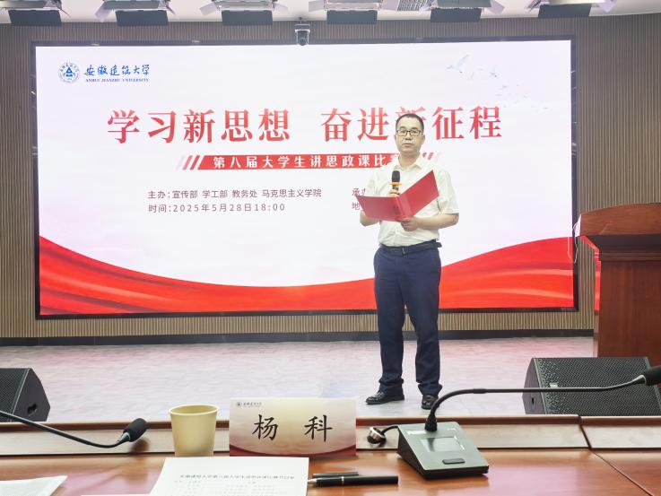 本网讯 5月28日,beat365在线唯一官网第八届大学生讲思政课比赛在徽智楼一楼报告厅举行。校党委常委、副校长杨科出席并致辞,合肥工业大学马克思主义学院院长牛小侠教授、安徽中医药大学马克思主义学院副院长郭跃教授以及beat365官网宣传部、教务处、教学督导组领导和专家应邀担任评委,马克思主义学院领导和教师参加活动。