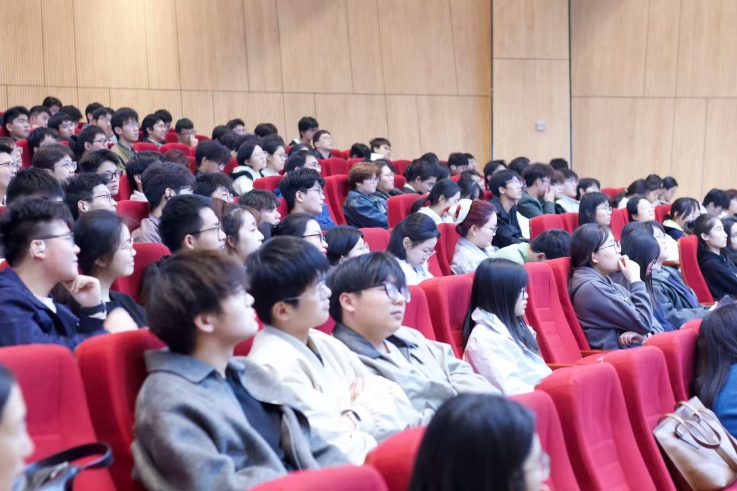 本网讯 为深入贯彻落实党的二十届四中全会关于建设教育强国的战略部署,深化思政课教育教学改革,弘扬劳模精神、劳动精神、工匠精神,充分发挥先进典型的示范引领作用,11月11日下午,马克思主义学院在紫云路校区徽韵楼二楼报告厅举办“英模・大师进思政课堂”活动,邀请全国劳动模范、全国五一劳动奖章获得者、全国向上向善好青年、合肥水务集团“雷锋精神”听漏队队长张杨,以“扎根水务第一线,争做时代新青年”为题作专题报告。报告会由马克思主义学院院长马晓艳主持,全校师生二百余人现场聆听。