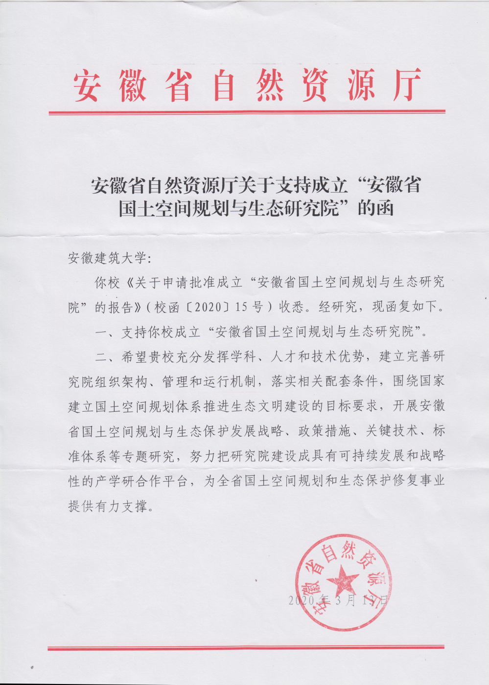 安徽省国土空间规划与生态研究院是全面落实beat365在线唯一官网和安徽省自然资源厅合作框架内容,在自然资源厅的支持下,于2020年4月成立。研究院面积680m2 ,现有研究人员32人,其中高级职称20人,具有博士学位18人。