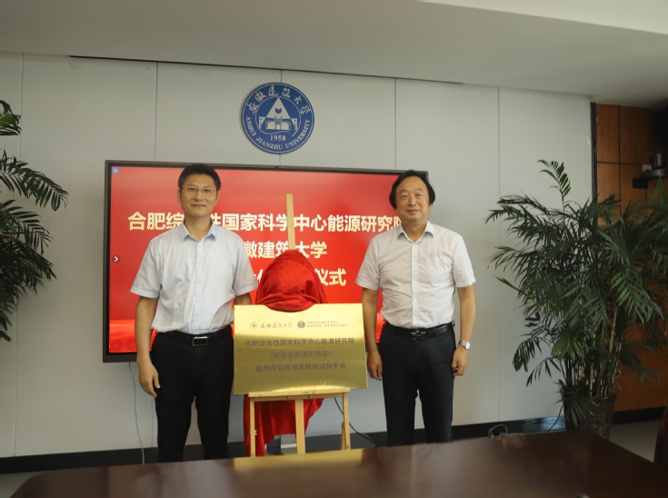 李建刚院士与马文革书记共同为“合肥综合性国家科学中心能源研究院(安徽省能源实验室)高频双台阵地震模拟试验平台”揭牌。