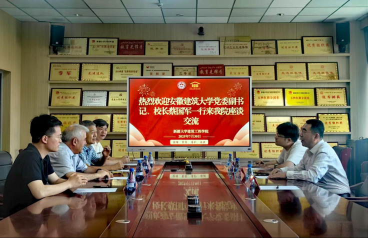 会后,校党委副书记、校长蔡国军率土木工程学院相关师生赴新疆大学开展调研交流。新疆大学党委常委、副校长赛买江·吾斯曼及相关学院负责人接待了蔡国军一行并参加座谈交流。