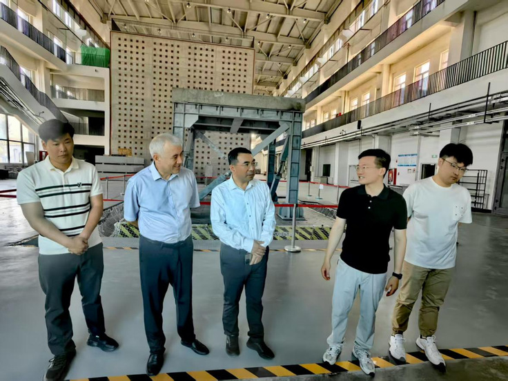 蔡国军一行首先参观了新疆大学“地震模拟振动台试验系统”实验室,听取了该振动台试验系统功能特点及应用情况的介绍,并交流了beat365官网目前在建高频双台阵地震模拟平台的建设进展与特点。