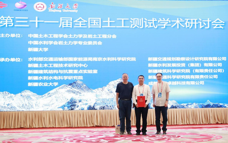本网讯 2025年7月25日至27日,第三十一届全国土工测试学术研讨会在新疆乌鲁木齐隆重举办。本届研讨会由中国土木工程学会土力学及岩土工程分会、中国水利学会岩土力学专业委员会、新疆大学主办,水利部交通运输部国家能源局南京水利科学研究院、新疆土木工程技术研究中心、新疆建筑结构与抗震重点实验室等单位承办,同济大学、上海大学、《岩土工程学报》编辑部等单位协办。中国科学院院士陈云敏等相关领域专家、学者齐聚一堂,共同交流岩土工程测试领域的前沿技术与工程案例。校党委副书记、校长蔡国军教授及土木工程学院师生受邀参加了此次学术会议。