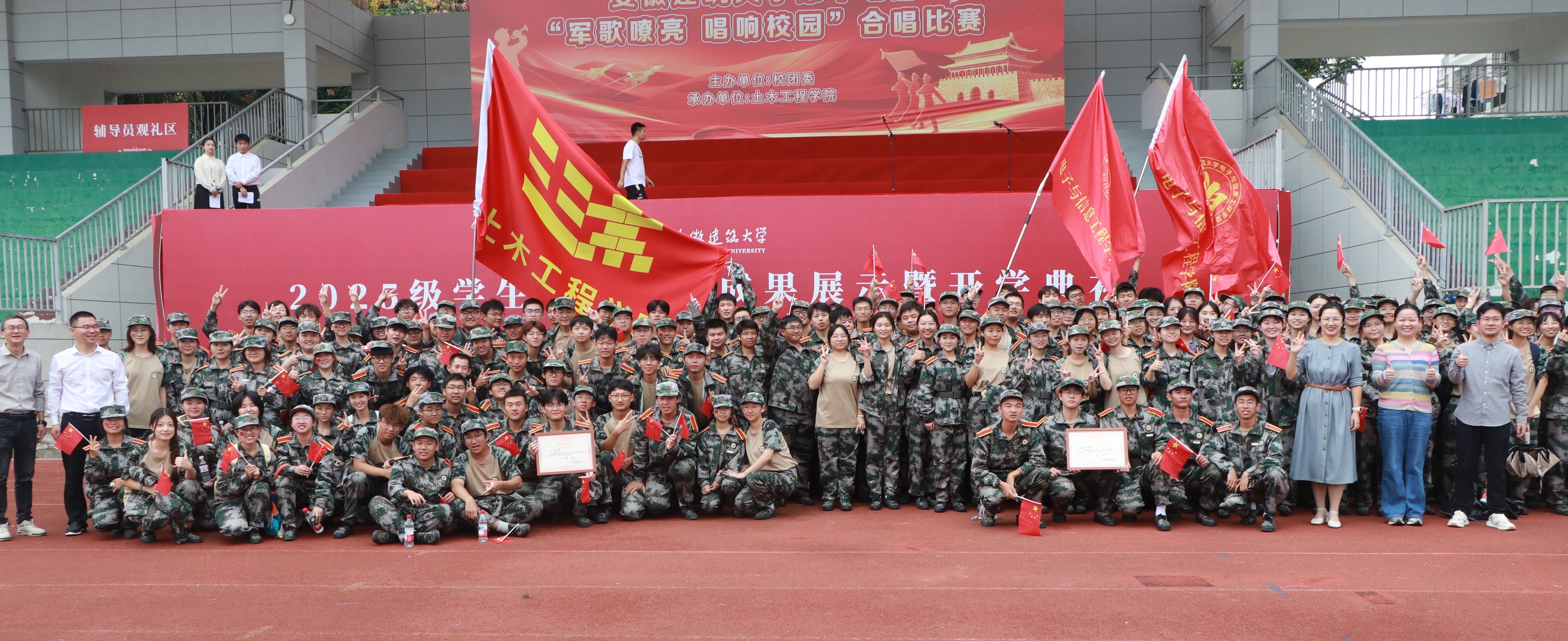 评委们从精神面貌、演唱主旨、综合编排等多个维度进行严格打分。最终,土木学院、电信学院荣获一等奖;艺术学院、数理学院、机械与电气工程学院斩获二等奖;经济与管理学院、材料与化学工程学院、环境与能源工程学院、外国语学院、公共管理学院、建筑与规划学院荣获三等奖。