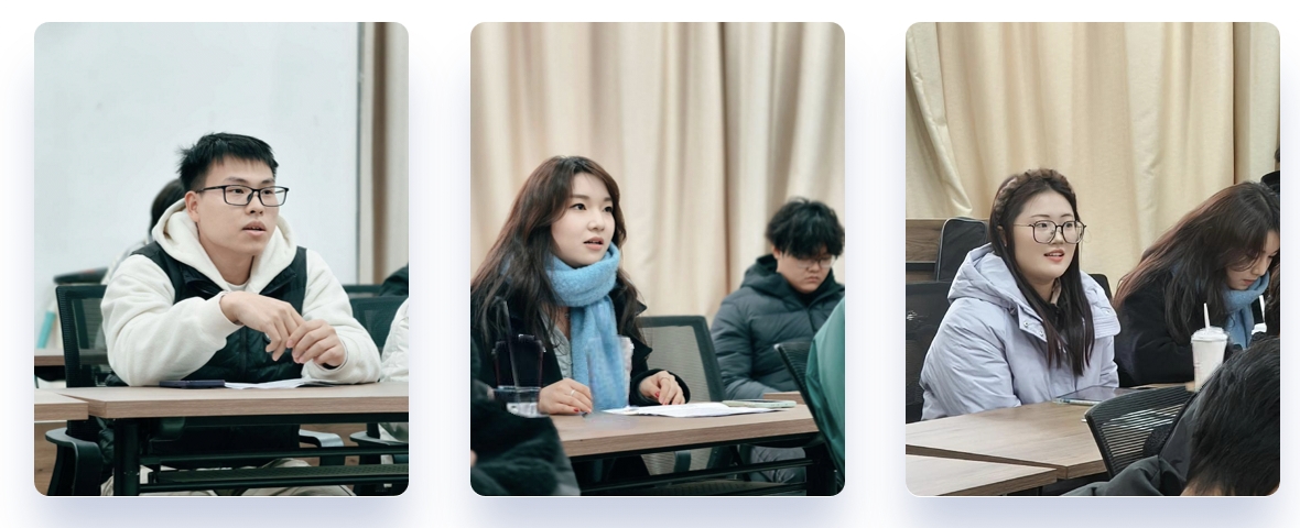 在经验分享环节,六位成功保送华中科技大学、湖南大学、中国地质大学、合肥工业大学的优秀学长学姐依次分享。丰莹同学结合自身经历,重点分享了如何从大一开始进行长线规划,夯实专业基础,保持优异学绩点的经验;涂梦宜同学介绍了学科竞赛心得,阐述了科研经历在保研申请中的重要作用;赵倩同学鼓励低年级学生主动加入老师课题组积累经验;王雅楠同学分享了申请材料准备、面试技巧;夏群同学讲述了简历制作和院校选择;李昶宏同学分享了其独特的申请历程和心路体会,强调了明确研究兴趣和提前联系导师的重要性。