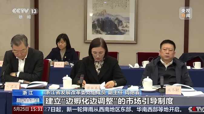 浙江省发展改革委党组成员 副主任 周艳春:建立“边孵化边调整”的市场引导制度,对新技术、新产业、新业态、新模式和新场景,量身定制更加包容审慎的规则与标准;健全新领域新业态知识产权保护制度,针对脑机接口审评审批困难、低空经济空域管理限制等堵点和卡点问题,给予更多的政策先行先试。