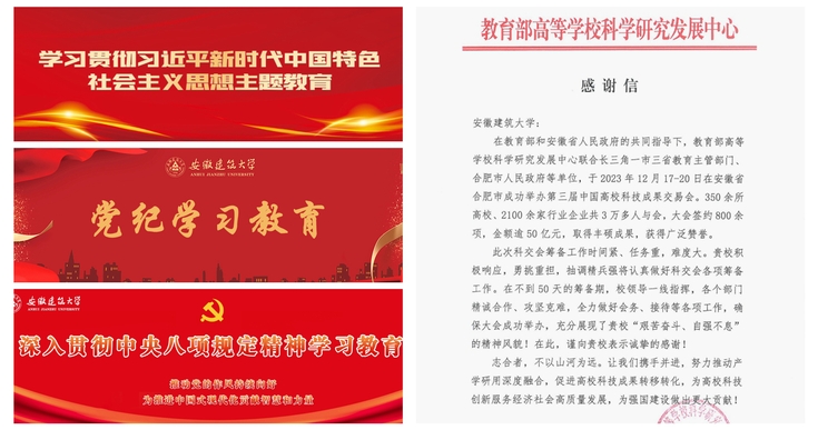 聚焦主题宣传,着眼大势。围绕学校“十四五”发展成就,高位统筹主题宣传,在时代浪潮中找准坐标、明晰方向。结合学习宣传贯彻党的二十大和二十届历次全会精神、等重大主题开展专题报道。开设党史学习教育、党纪学习教育、深入贯彻中央八项规定精神学习教育专题网站,“党旗飘扬”“警示案例”等专栏。在新华社、学习强国、中国教育报、安徽教育网等省市级以上媒体报道学校稿件900余篇,营造昂扬向上、团结奋进的浓厚氛围,让主流旋律成为校园最强音。2023年,高质量完成中国高校科技成果交易会宣传工作,设计制作长三角联盟标识。在省级以上主流媒体传播建大声音,高质量完成教育部、省委省政府交付的宣传任务,获教育部表扬信。