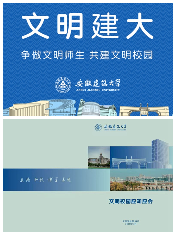 创建文明校园,润融于行。文明非一日之功,需要如春风化雨般的持久滋养;文明非孤立之事,需要全方位协同,形成育人合力,学校通过“润融于行”的扎实实践,将文明的种子播撒于行为细节。制定实施《文明校园创建工作方案(2023-2025年)》,评选表彰九大文明创建单位,编印文明校园创建应知应会,设置文明建大专题网站。大力加强法治宣传教育,推进书香校园建设。弘扬建大精神,校歌编写谱曲取得阶段性成果,命名学校校区及楼宇,学校金寨路校区和紫云路校区及15处楼宇正式挂牌投入使用。举办教学成就展,更新推广学校校徽、校训、学校宣传片和65周年校庆标识等视觉识别系统,发布学校吉祥物“易小海”并多场景运用,形成具有鲜明个性特征的学校名片。