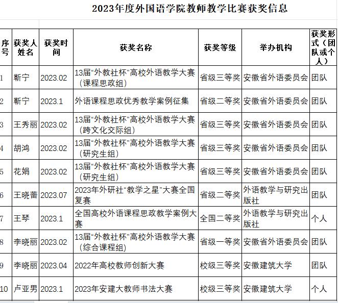 2023年度外国语学院教师教学比赛获奖信息