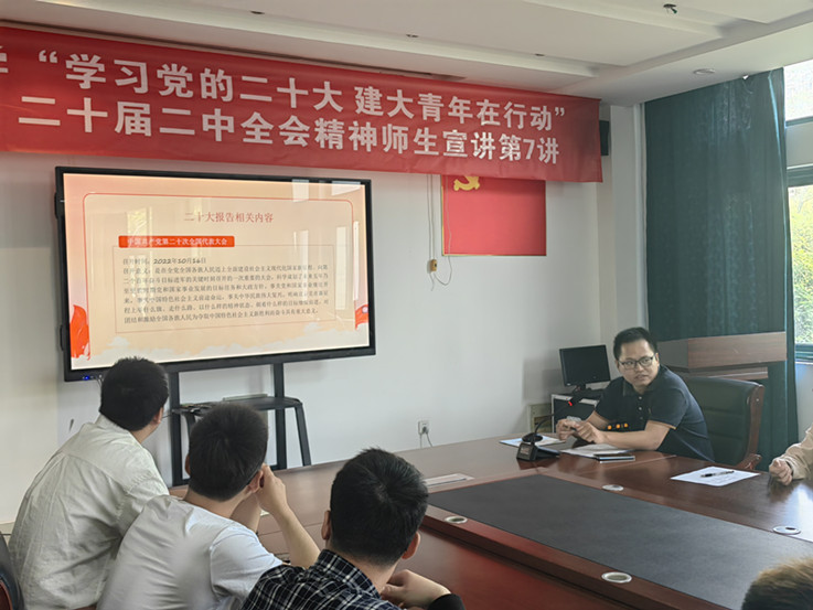 外国语学院辅导员樊远兵作了题为《青春践行二十大 挺膺担当共成长》的报告,从党的二十大和党的二十届二中全会召开的背景、意义及党的二十大报告和党的二十届二中全会公报的主要内容出发,系统宣讲了党的二十大和二十届二中全会精神。他指出青年学子要认真贯彻党的二十大和二十届二中全会精神,牢记党的嘱托、党的教育,不负韶华,不负时代,努力成为有理想、敢担当、能吃苦、肯奋斗的新时代好青年,为全面建设社会主义现代化国家、全面推进中华民族伟大复兴,做出新的更大贡献。(作者:樊远兵;审核:余鸿)