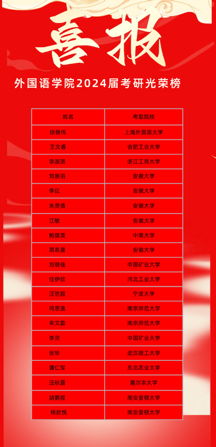 外国语学院2024届毕业生考研光荣榜