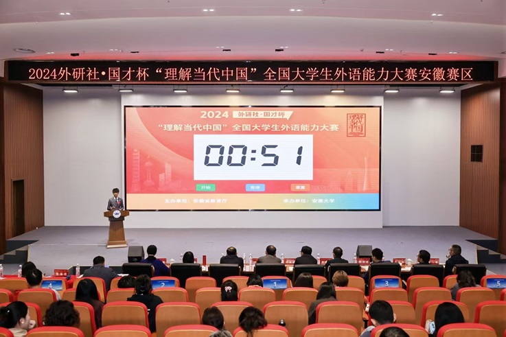 2024“外研社·国才杯”英语演讲比赛安徽省复赛于11月2号在安徽大学拉开帷幕。我院的朱高绮同学与公共管理学院的刘铭乐同学均赛出了风采。经过激烈的角逐,刘铭乐同学最终荣获省级二等奖。(作者:赵靓靓、岳新伟;一审:虞佳丽;二审:汪令宇;三审:余鸿)