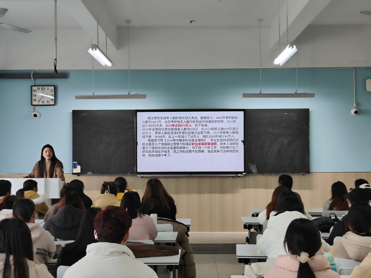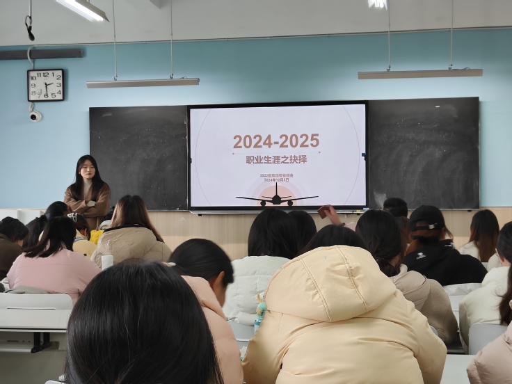 本网讯 为了帮助大三同学加强学业规划,12月5日下午,2022级英语专业在1502教室召开了“职业生涯规划主题班会”。班会由2022级辅导员虞佳丽主持,2022级全体本科生参加。