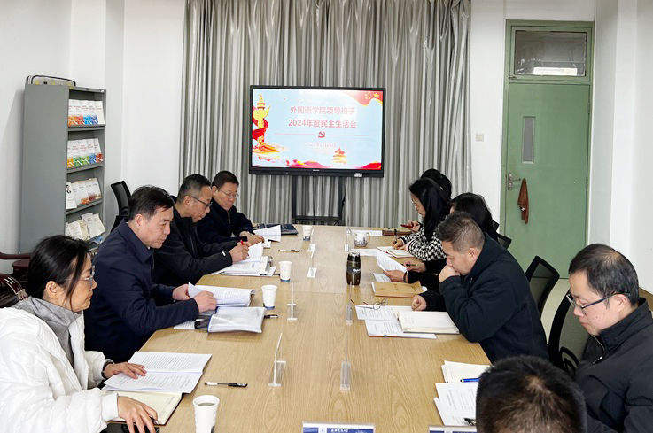 本网讯 2月26日,外国语学院党总支在徽学楼1714会议室召开2024年度民主生活会。校党委副书记、校长黄显怀率领学校党员领导干部民主生活会第二督导组成员徐庚阳、联络员张良到会指导。校纪委委员汪力君、外国语学院院长徐春山、学院党支部书记代表列席本次会议。民主生活会由外国语学院党总支书记余鸿主持。