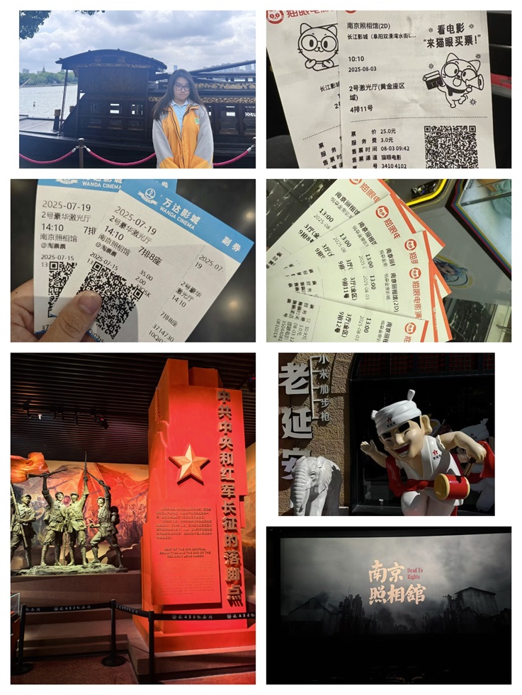 爱国主义教育,是新生入学教育中不可或缺的精神底色。为纪念中国人民抗日战争暨世界反法西斯战争胜利80周年,学院组织新生与家人共同观看庄严而盛大的阅兵仪式,共同铭记历史、缅怀先烈,共同感受祖国的蓬勃力量与繁荣气象。在此前,诸多新生也踏上寻访红色足迹的旅程,25级英语3班的章雅琳在延安革命纪念馆参观瞻仰,25级英语2班的谢鑫怡同学伫立在南湖红船前感受历史的厚重与沉静。此外,新生们还纷纷走进影院,观看《南京照相馆》等爱国影视作品,留存的电影票根、真挚的观后感悟,成为他们传递爱国情感的鲜活印记,红色的血脉在这一代青年身上延续,青春的力量正与时代同频共振。