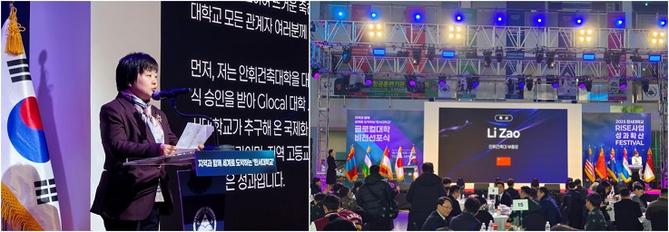 12月3日下午,作品展暨韩瑞 RISE产学合作成果交流开幕式在韩瑞大学泰安校区举行。李早教授应邀出席开幕式并致辞。李早对韩瑞大学的精心筹备表示诚挚感谢,高度肯定了两校长期以来合作在推动设计教育创新、培养复合型人才等方面中取得的显著成效,希望未来双方能进一步分享教育和产学合作经验、传递文化特色,拓展更多元化的合作空间。