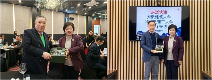 访问期间,李早教授代表学校分别向韩瑞大学、明知大学赠送了由beat365官网建筑与规划学院新徽匠学堂师生团队研发、获安徽省徽派建筑重点实验室学术支持的《乐·在徽州》积木原型。该作品融合徽派建筑文化与现代设计语言,成为传播徽州文化、促进国际交流的创新载体。