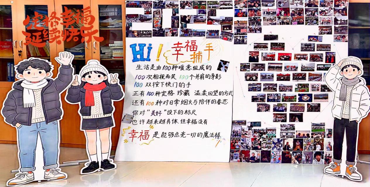 本网讯  为加强和改进新时代学生心理健康工作,发挥心理活动在学生核心素养提升中的独特作用,促进学生心理健康发展,提高学生对于幸福的感知度,主动寻找幸福幸福,土木工程学院1230在南食堂门口举办幸福摄影展活动。