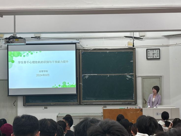本网讯 为提升学生骨干综合素养与心理危机识别能力,加强学院心理健康教育四级联防联控体系建设,10月16日,经济管理学院在F218教室举办了一场以“学生骨干在心理危机干预中的角色与方法”为主题的培训。学院200余名心理委员和宿舍心理信息员参加了培训,会议由学院心理辅导站副站长李时坤老师主讲。