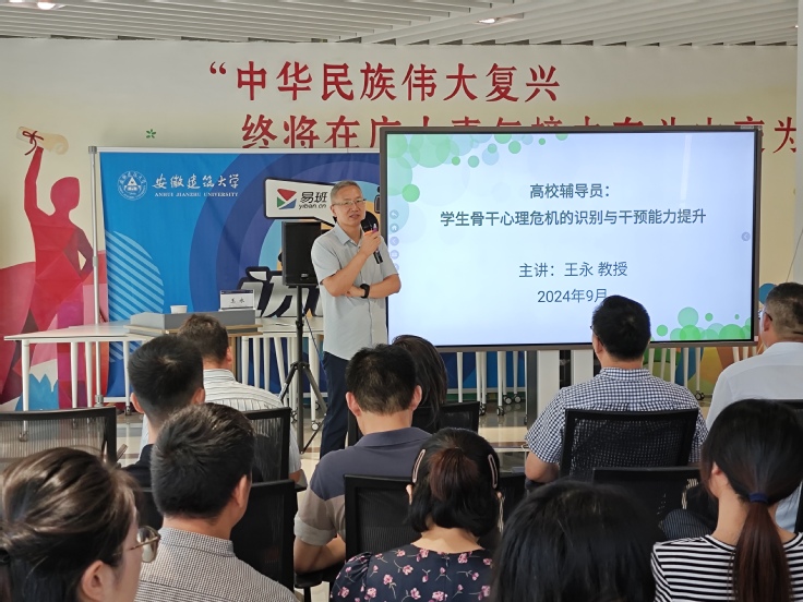 学期伊始,学生处就2024年心理骨干心理危机预防与干预能力提升培训做专题动员,强调了此次培训的重要性和深远意义,特邀安徽省教育厅高校大学生心理健康教育专家指导委员会委员王永教授作为主讲嘉宾,为各学院分管学生工作副书记、全体专兼职辅导员进行了心理危机识别与干预能力培训。王永教授通过理论讲授、案例分析和互动交流等多种形式,从大学生心理健康现状、大学生的危机识别,心理骨干“望闻问切”的应对策略几个方面,深入浅出地讲解了如何做好大学生心理危机的识别与应对。此次集中培训进一步提升了学校心理健康教育工作教师的专业化水平,为各学院做好班级心理委员及心理信息员培训工作打下了良好的基础。