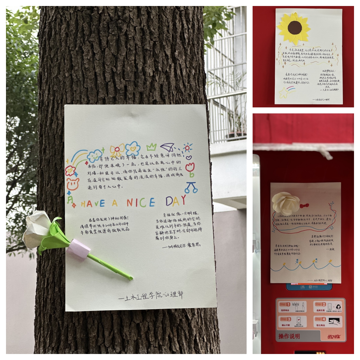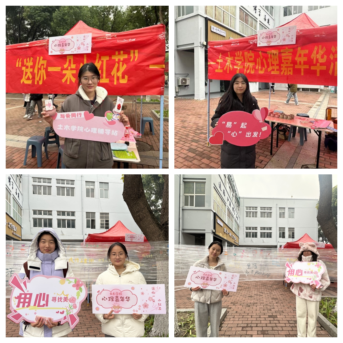 本网讯 近日,为传递正能量,不断加强大学生心理健康教育工作,培育大学生自尊自信、理性平和、积极向上的健康心态,推进和谐校园建设,土木学院心理辅导站在南食堂旁开展了“送你一朵小红花”——心理嘉年华活动。本次活动面向全校同学一起参与,大家共同营造一个温暖积极的心理成长环境,也共同见证了一场精彩纷呈的心理文化盛会。