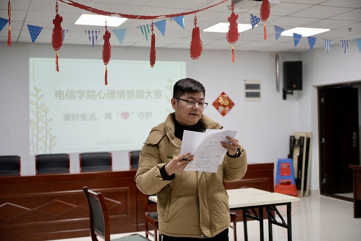 本网讯 2月25日,电子与信息工程学院成功举办2025年心理情景剧大赛。本次大赛以“美好生活,用‘❤’守护”为主题,吸引了学院14支学生团队参与角逐,通过精心设计的剧本和生动的舞台表演传递心理健康正能量,展现当代大学生的创造力与青春风采。