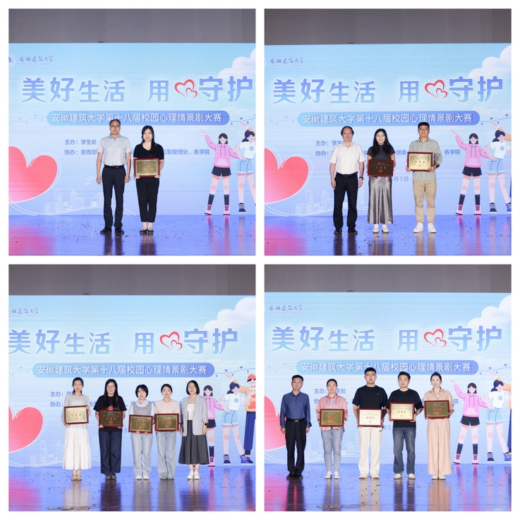 经过激烈角逐,艺术学院《拥有被讨厌的勇气》获得一等奖;心霖剧社《生活仍有诗和远方》和环能学院的《非标准答案》获得二等奖;经管学院、土木学院、机电学院和外国语学院的作品分获三等奖。艺术学院2024级视传专业的刘川旗、经管学院2023级工程管理专业的吴翔宇、环能学院2024级能源专业的柯致远3位同学分获最佳演员奖;艺术学院孙长玥、环能学院韩三青、心理健康中心管皓宇3位老师获得最佳指导老师奖。