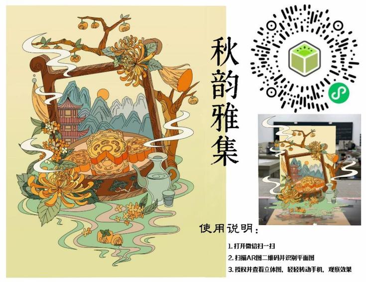 “金秋绘雅韵,AR藏秋声”秋日主题数字插画活动中,同学们充分运用专业绘画软件,以细腻笔触与丰富图层描绘秋日景象。金黄银杏铺满石阶、稻浪翻滚勾勒丰收肌理,静态画面充满诗意。更富创意的是,学生进一步通过AR技术赋予静态画面动态生命力——银杏叶翩然飘落,稻浪随指尖波动,灵鹿转头张望,月光渐次铺陈。从数字绘制到动态编程的完整创作过程,体现了艺术表现形式的创新发展。同学们反复调试动态效果,探讨技术实现与艺术表达的平衡,在实践中探索数字化时代艺术创作的无限可能。