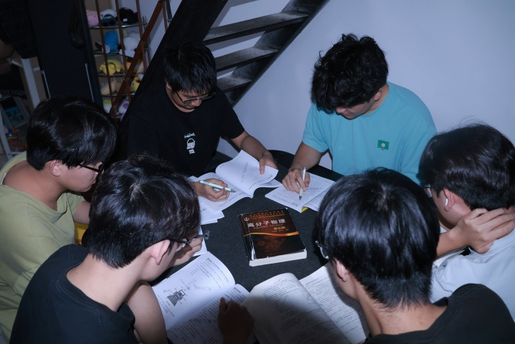 独行总显孤寂,同行却是温暖于心。这六位学子,在三年多的备考时光里,更用行动诠释着“同行”的意义。桌上整齐排列的笔记,墙上标注清晰的日程表,无声记录着他们的坚持,也对低迷战友有着无限提醒。在备考途中,困难与烦恼总是如影随形,同时铺开的几张草稿纸,共同推演,解答谜题;一杯热茶、一句走起、一张写满鼓励的便签,无需过多言语,这便是最温暖的慰藉。他们以自律为舟,以互助为桨,在知识的海洋中稳步前行。