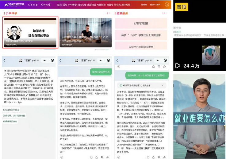 中国大学生在线是由教育部主管主办、教育部思政司指导、中国教育出版传媒集团承办的公益性门户网站,是全国高校网络思政教育的核心阵地,秉持“共创、共建、共管、共用、共享”原则,以“栏目共建、活动联办、服务共享”模式凝聚全国高校育人力量。“导员那些事儿”自媒体平台,秉持“陪伴是最好的成长”育人理念,紧扣新时代大学生思想特点和成长需求,以“AI智能体、网络思政、AI辅导员、数字人”为创新坐标,构建起“技术赋能、数据驱动、精准育人”三位一体的新质思政能力培养体系,打破时空限制,实现7×24小时咨询服务和智能思政引导,让思政教育真正走进学生、融入生活。
