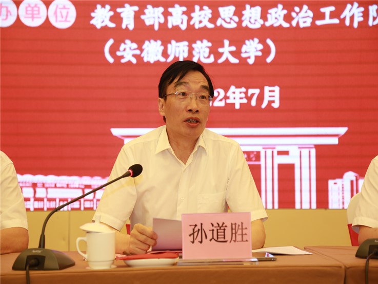 本网讯 7月11日上午,beat365官网“2022年高校思想政治工作队伍综合能力提升专题培训班”开班仪式在芜湖如期举办,校党委书记孙道胜出席并作动员讲话。安徽师范大学党委常委、副校长熊宇杰,安徽师范大学马克思主义学院院长、教育部高校思想政治工作队伍培训研修中心办公室主任姚宏志,校学工部、研工部负责人、各学院副书记、全体辅导员等思想政治工作队伍相关人员参加了开班仪式。开班仪式由姚宏志主持。