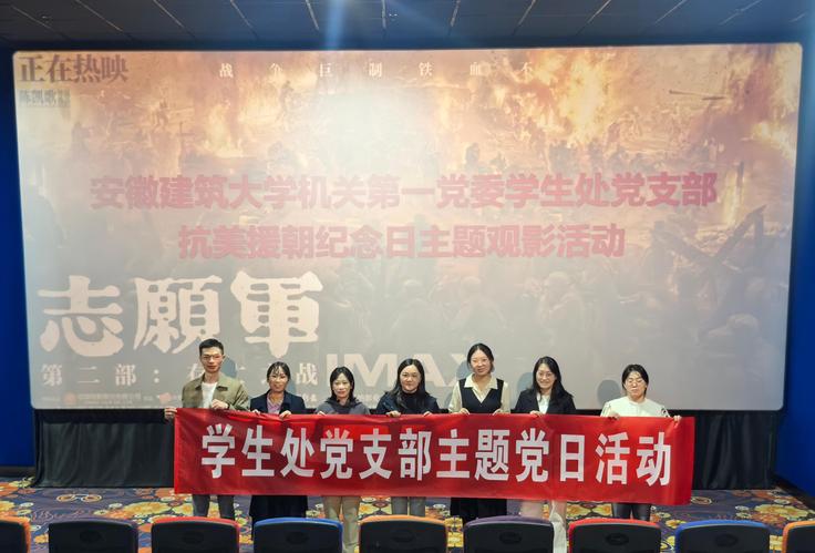 本网讯 10月25日是抗美援朝纪念日,74年前,中国人民志愿军雄赳赳,气昂昂,跨国鸭绿江,奔赴朝鲜战场,书写了抗美援朝保家卫国的壮丽史诗。为了弘扬伟大的抗美援朝精神,不忘英烈们的丰功伟绩,学生处党支部组织党员观看了电影《志愿军·存亡之战》。