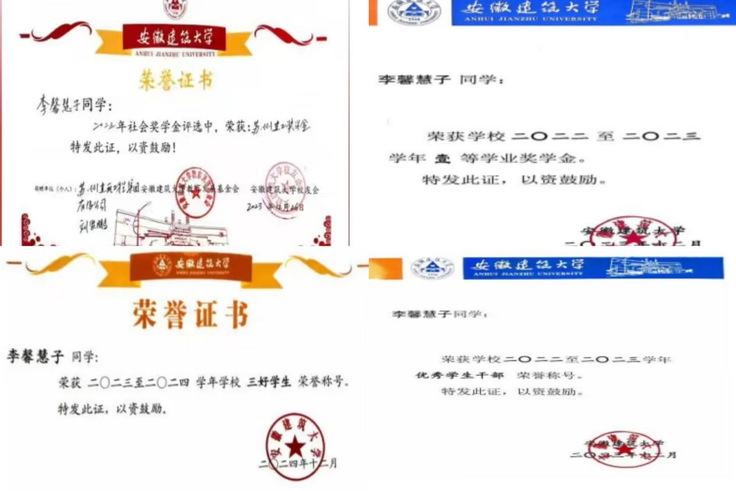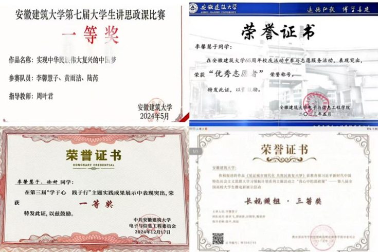 李馨慧子,beat365在线唯一官网电子与信息工程学院2022级网络工程专业本科生,现任班级团支书,中共党员。自大一以来,成绩始终名列前茅,平均绩点稳居专业前1%(1/101),多门核心课程斩获高分,《高等数学A2》98分、《网络安全》96分、《概率论与数理统计A》99分。曾荣获安徽省大学生创新大赛铜奖、beat365在线唯一官网数学建模竞赛一等奖、电子与信息工程学院互联网+一等奖等荣誉奖项;熟练掌握多项专业技能与工具,通过大学英语六级,拿下高中数学教资面试,连续两年斩获校级奖学金,获评“苏州建工”社会奖学金、“优秀班干部”、“三好学生”、“优秀志愿者”、“优秀运动员”等多项荣誉。现成功保研至安徽大学大数据技术与工程专业。