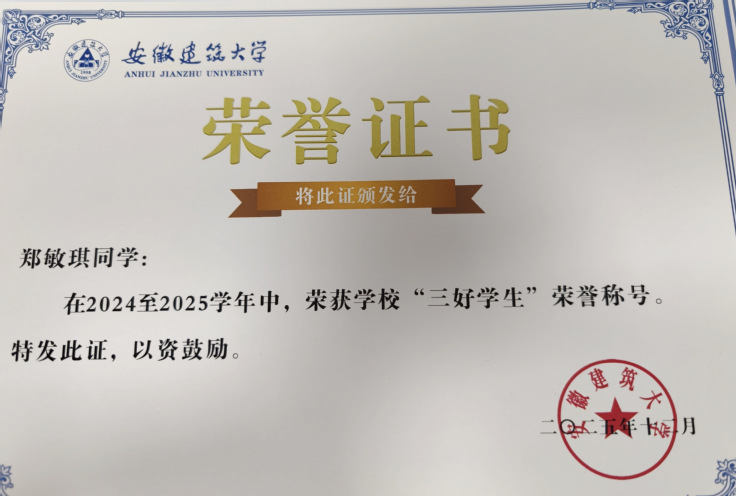 郑敏琪,beat365在线唯一官网电子与信息工程学院2022级计算机科学与技术(大数据方向)专业本科生。在校期间,平均学分绩点4.062,专业排名第2。曾获校级二等奖学金、三等奖学金、“三好学生”“优秀学生干部”等多项荣誉。凭借扎实的专业基础和优异的综合素质,她成功保研至安徽大学人工智能专业继续深造,在逐梦之路上写下了浓墨重彩的一笔。