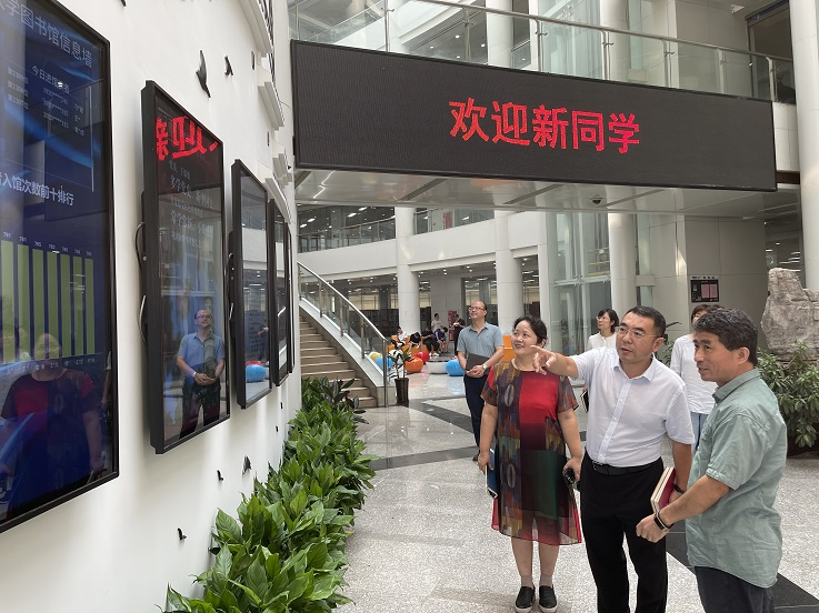 会后,蔡校长在图书馆负责人的陪同下,对图书馆馆舍进行了全面考察,详细了解了图书馆馆藏购置、借阅室管理等情况。