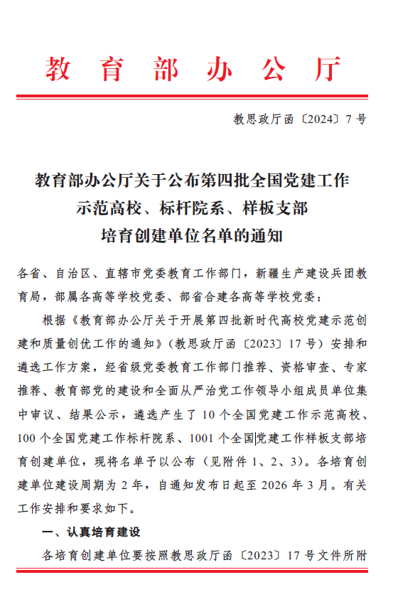 学校一学生党支部入选第四批“全国党建工作样板支部”...