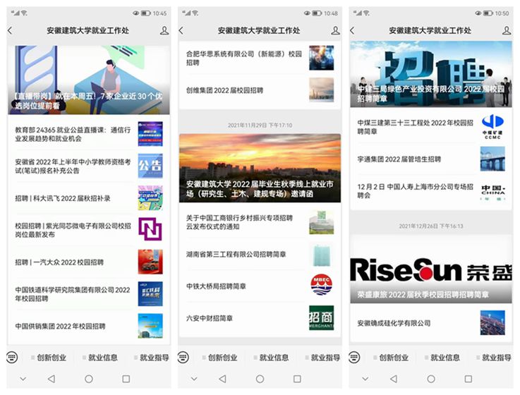 二是强化“线上+线下”的校园招聘服务,完善市场化就业促进机制。学校深刻践行“以学生满意,学校满意,社会满意”为目标的工作理念,线上线下双管齐下,持续提升就业市场服务水平。线上严格用人单位资质审查,不断提高岗位质量,确保招聘信息传递及时准确;线下创建以人为本的服务环境,从企业前期联络,到现场服务、后期跟踪,为用人单位提供全程贴心服务。结合疫情防控形势,做好校园招聘应急预案,强化网络校园招聘服务,鼓励用人单位通过空中招聘会、线上宣讲、远程面试、网上签约等开展校园招聘,促进线上线下招聘相结合,提高招聘成功率。利用教育部“24365就业平台”、“国聘行动”、就业信息网、官方微信公众号、QQ群等渠道资源,不间断转载、发布就业信息年均超过10000条。