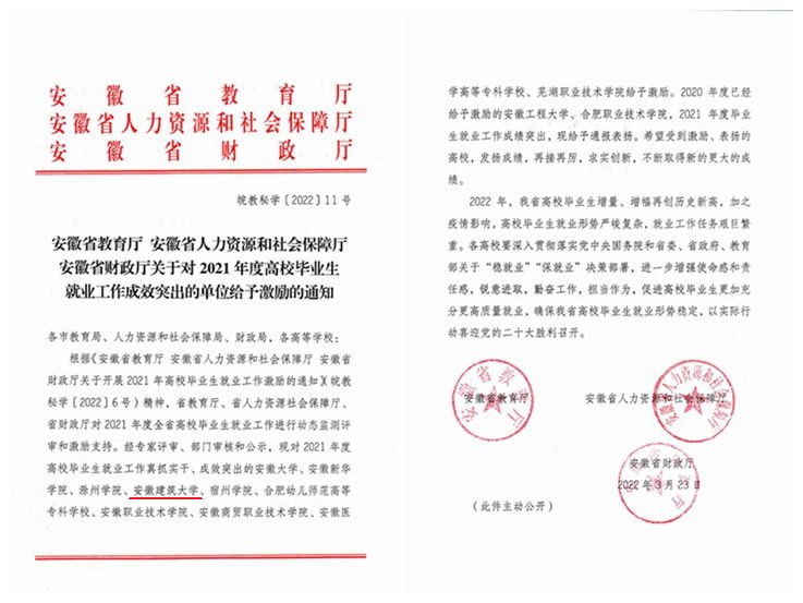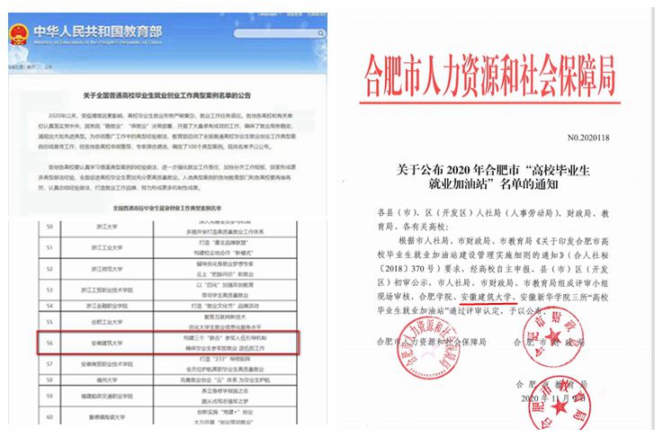 志不求易者成,事不避难者进。近年来,学校毕业生就业去向落实率处于省属高校前列,毕业生综合素质不断增强,用人单位满意度逐年提升。2017年,学校被安徽省科技厅认定为省级众创空间;2018年,被安徽省人社厅认定为省级创业学院;2020年,被合肥市人社局认定为合肥市高校毕业生就业加油站;2021年,学校获得教育部全国普通高校毕业生就业创业工作典型案例表彰,2022年,获得安徽省就业工作成效突出单位激励表彰,并作为唯一一所省属本科高校被省教育厅推荐为安徽省就业先进集体。