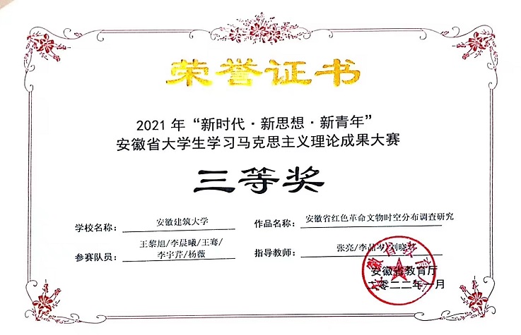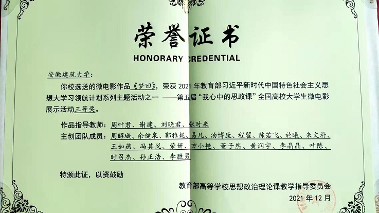 三是党建引领实践创新。根据不同课程的内容和特色,积极推进习近平新时代中国特色社会主义思想“三进”工作。精心讲好“开学第一课”,组织开展“大学生同上思政大课”,举办“四史”教育融入思政课堂教学改革创新报告会,开展“学党史”微视频创作比赛。组建教师团队赴全省各地实地调研,编纂《红色江淮光辉记忆——安徽红色建筑印迹》一书,召开新书发布会,助力红色文化和红色建筑文化研究。举办beat365在线唯一官网首届青春筑梦剧场暨红色情景剧比赛等庆祝建党100周年系列活动,通过历史情景剧的演绎让革命历史人物的形象立体起来,丰富了革命文化的价值内涵。以电视剧《觉醒年代》为素材创作的微电影《梦回》获教育部“全国大学生习近平新时代中国特色社会主义思想大学习领航计划系列主题活动——我心中的思政课”微电影比赛三等奖。指导学生参加安徽省大学生党史知识学习竞赛,并获二等奖。