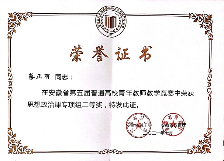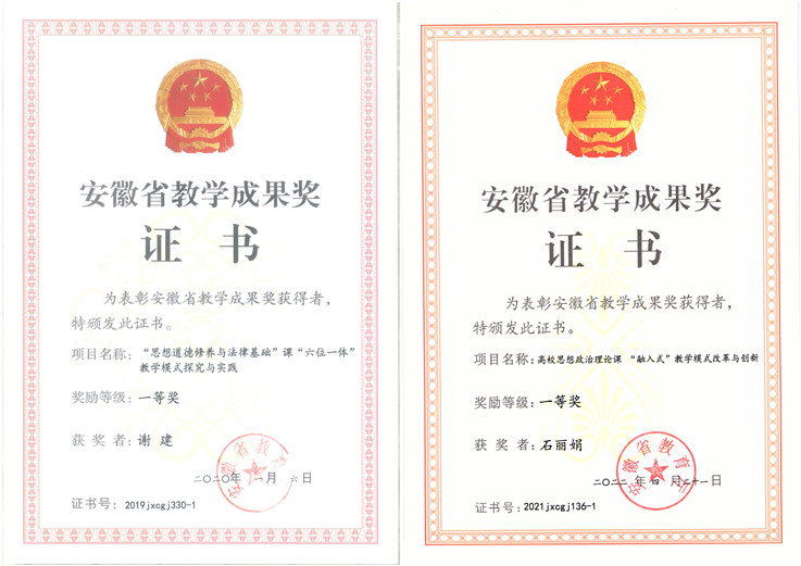 五年来,在全体教师的共同努力下,学院教学改革成果取得显著成效,获批省级质量工程40余项,省级教学成果一等奖2项,二等奖、三等奖各1项,省级精品课程7门(含4门公选课);获评教育部优秀教学科研团队、省级示范教研室、优秀教学团队等荣誉;在省高校思政课说课比赛、“同课异构”教学比赛、青教赛等赛事中荣获多项殊荣;多人被评安徽省思政课影响力人物、教学名师、教坛新秀等称号。