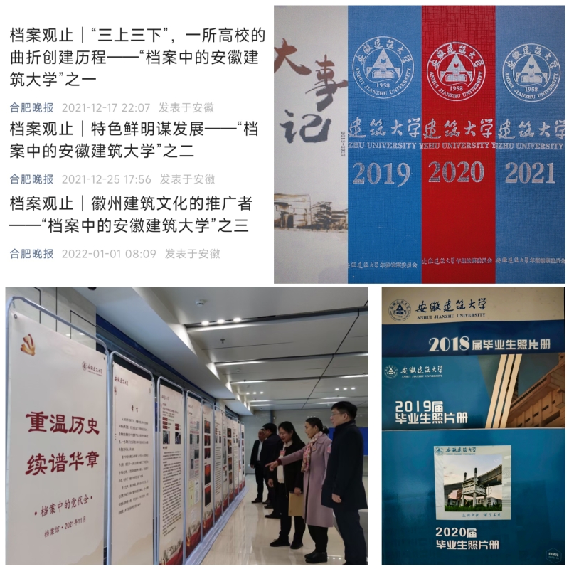 档案工作围绕学校中心工作,开发信息资源。学校第二次党代会前夕,通过校报、公众号、网站、会场展板等多种形式,开展“档案中的党代会”专题宣传。围绕“时代楷模”邱军校友在校生活轨迹,汇集其学习、担任学生干部、入党、参加文体活动等方面的纸质、图片、音视频档案记录,勾勒出其较为完整的求学生涯和积极奋进的人物形象,为中化集团筹办邱军同志光荣事迹展览提供宝贵的原始档案。为合肥晚报社汇集、提供体现学校办学特点、服务地方经济社会发展所做贡献的相关档案,推送档案观止栏目3期,“三上三下”专辑获得称赞。为校史馆更新,挖掘馆藏提供支撑。多次赴汤池村开展“我为群众办实事”实践活动,征集驻村扶贫工作队专题档案,对村级档案管理进行辅导。为《安徽年鉴》编撰稿件。编制《beat365在线唯一官网2013-2017年大事记》、2018年后历届毕业生照片册。重启《beat365在线唯一官网年鉴》编纂,确立并不断优化年鉴编纂工作机制,制发《beat365在线唯一官网年鉴编纂工作暂行办法》,推进年鉴编纂逐步常态化、规范化,先后编纂2019卷、2020卷、2021卷,总字数逾300万字,条目数超1000个,另有各类附表名单近500个,为学校各单位工作查考提供便利。