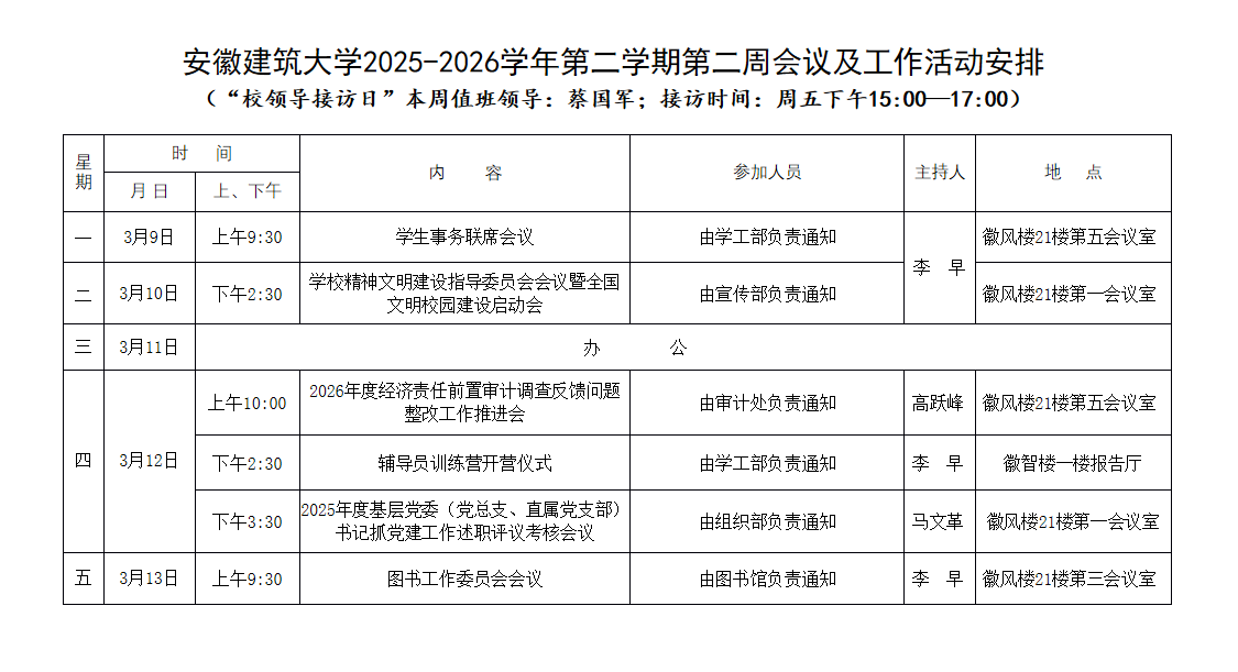 beat365在线唯一官网2025-2026学年第二学期第二周会议及工作活动安排