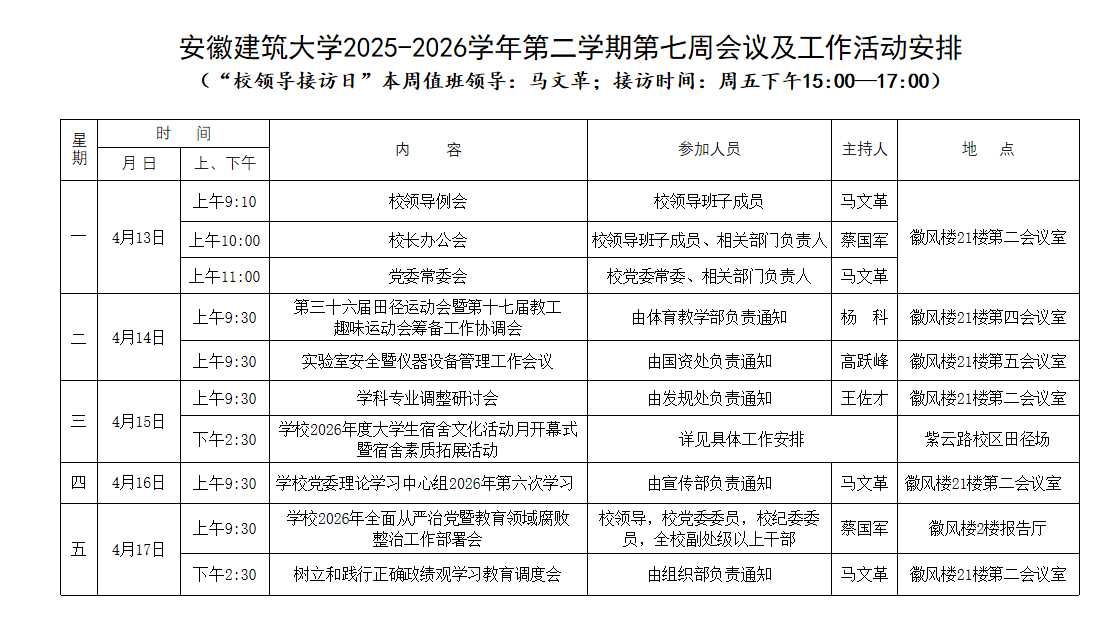 beat365在线唯一官网2025-2026学年第二学期第七周会议及工作活动安排