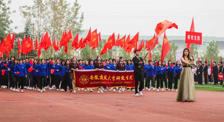 开幕式中,研究生方阵精神抖擞,伴着激昂有力的口号,踏着整齐划一的步伐入场,充分展现了研究生的蓬勃朝气与青春活力。