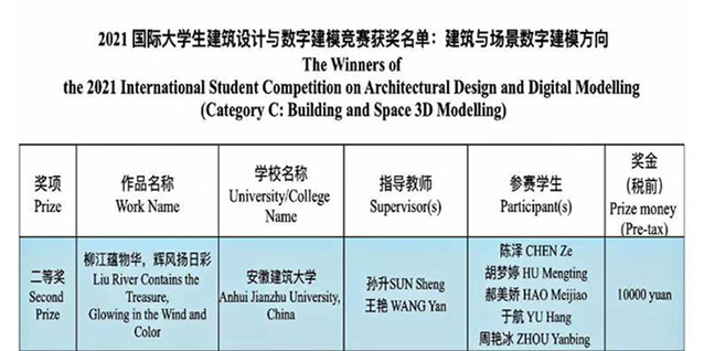 艺术学子在2021 国际大学生建筑设计与数字建模竞赛中荣获二等奖