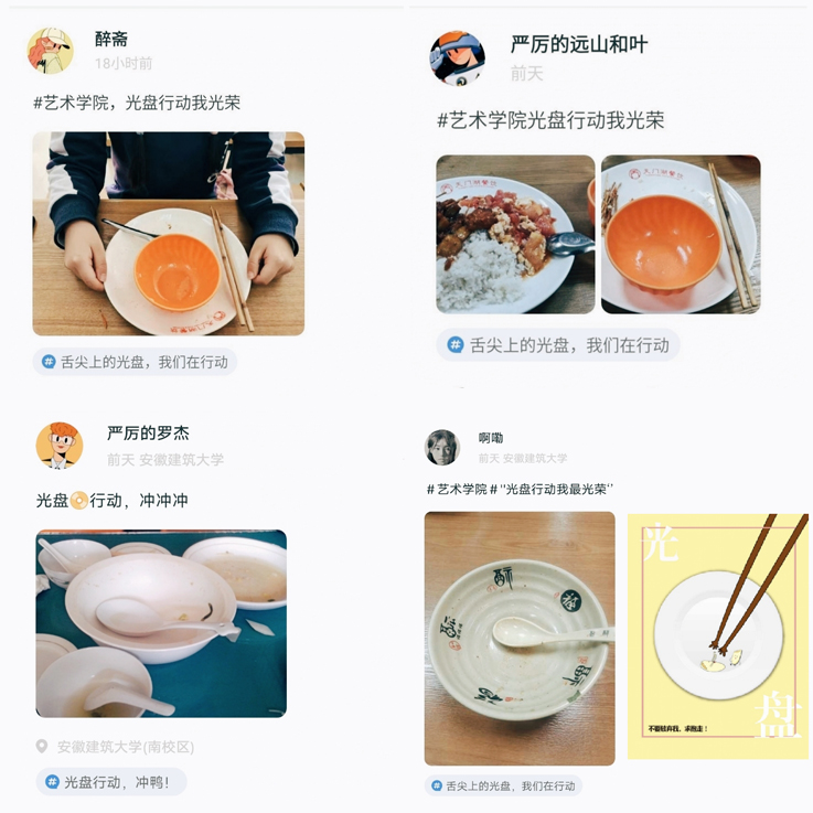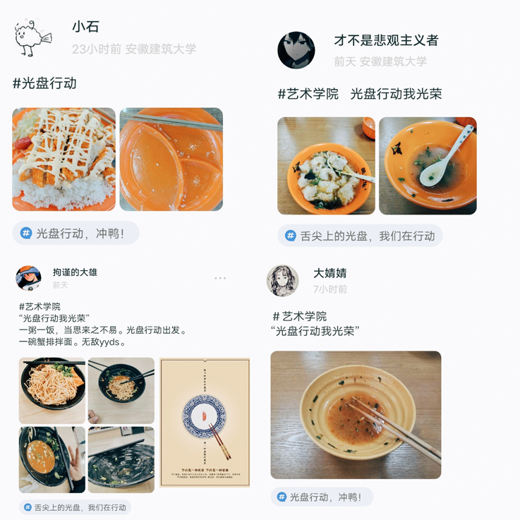 此次活动通过今日校园系统里打卡形式,倡导节约,抵制浪费同学们积极响应,踊跃参与,纷纷在今日校园分享自己的光盘照片,营造光盘打卡的浓厚氛围,争做勤俭节约的实践者与传播者,“光盘行动我光荣”的理念在学生中广泛传播,起到了良好的宣传作用。