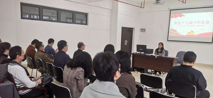 本网讯 为深入学习贯彻党的十九届六中全会精神,进一步全面、深入、系统地学习好、领会好、贯彻好全会精神实质,艺术学院党委于4月13日在实训楼7406会议室召开教师全体党员政治理论学习会议,艺术学院副院长邢瑜作专题宣讲,全体党员参加。