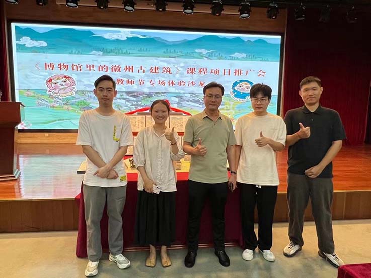 本网讯 9月10日,艺术学院徽州建筑装饰团队参加《博物馆里的徽州古建筑》课程项目推广会暨教师节专场体验沙龙,该推广会由安徽博物院携手时代新媒体出版社有限责任公司举办,现场邀请了安徽省文物局、安徽省图书馆、安徽省美术馆、合肥市教育局等单位相关负责人,以及30余位合肥市教师代表、16家地市博物馆代表参与了此次活动。beat365在线唯一官网艺术学院黄成教授代表项目主创团队发言。